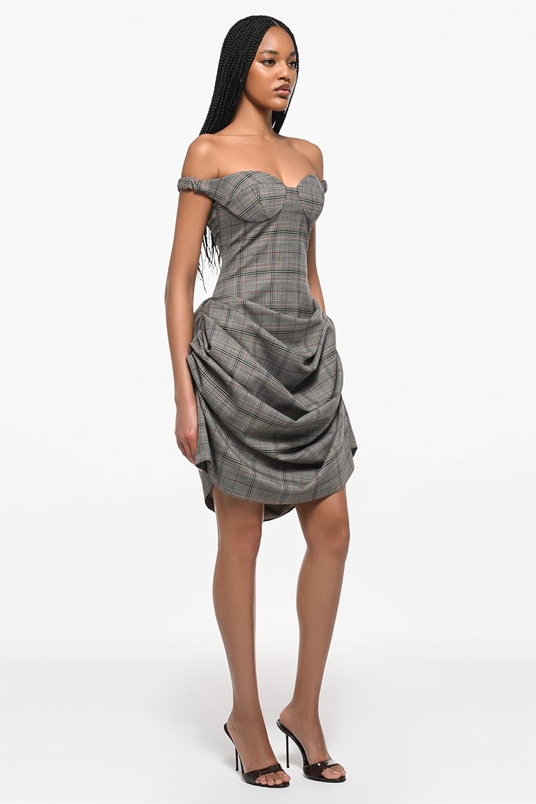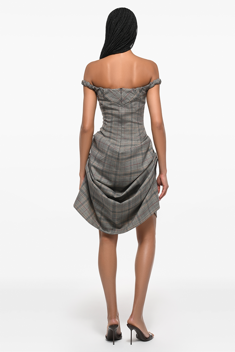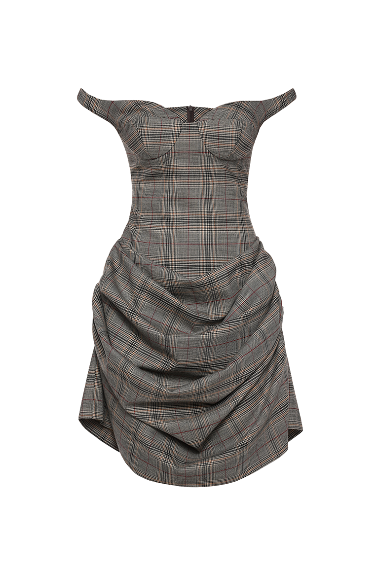Checkered draped mini dress